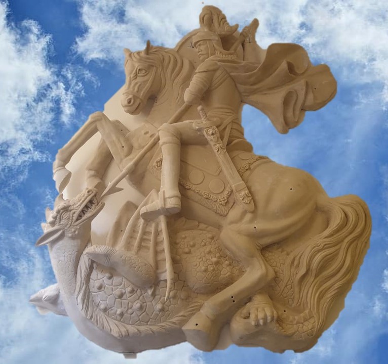 جداريه فنيه للملاك ميخائيل .تفاصيل فنيه و نحتيه,مقاس 200*160 سم ,خامه GRB قويه تتحمل العوامل الخارجي..
